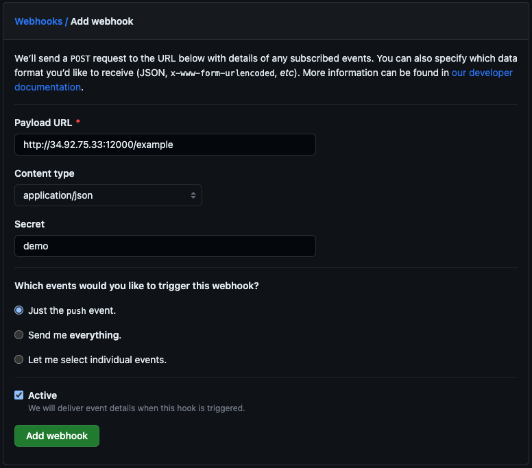 Source Code Repository에 Push 이벤트가 들어오면 Argo Events의 Event Sensor가 감지하도록 WebHook을 설정해야 합니다. 즉 개발자는 본인의 Code를 Push하기만 하면 배포 과정까지 자동화 할 수 있는 것이죠, 우선 Github에 접속하여 WebHook을 등록해야 합니다.