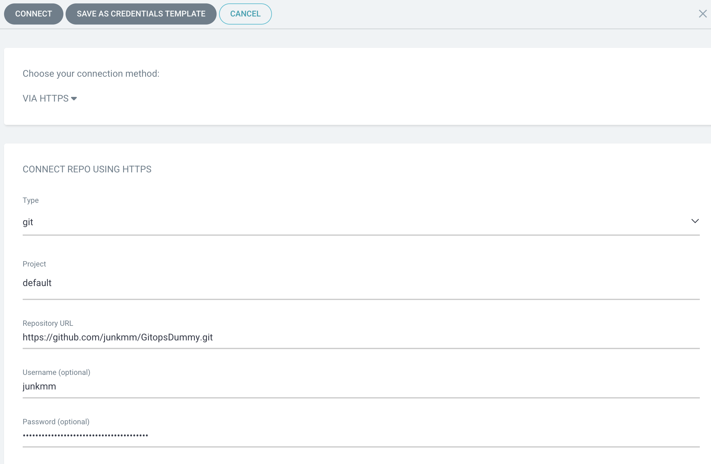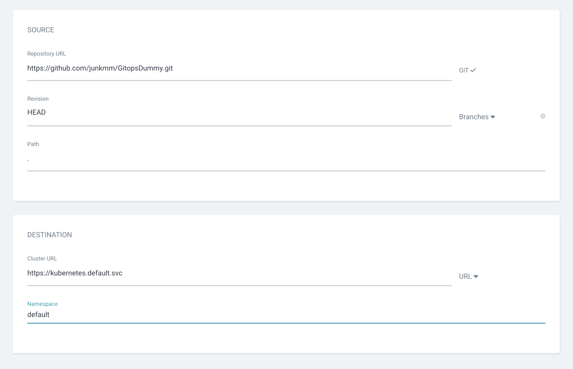 `<your-git-name>/<your-git-repo>` : GitOps 레포 정보를 입력합니다. EX) junkmm/GitopsDummy.git