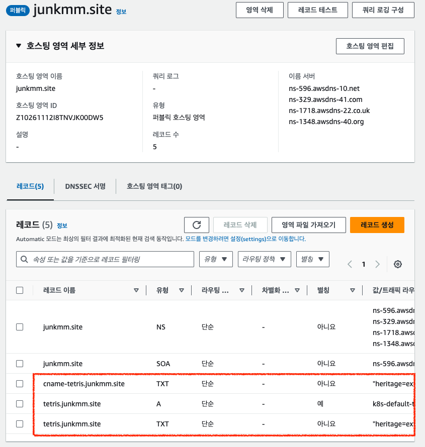 Route53에 레코드가 추가된 것을 확인할 수 있습니다.