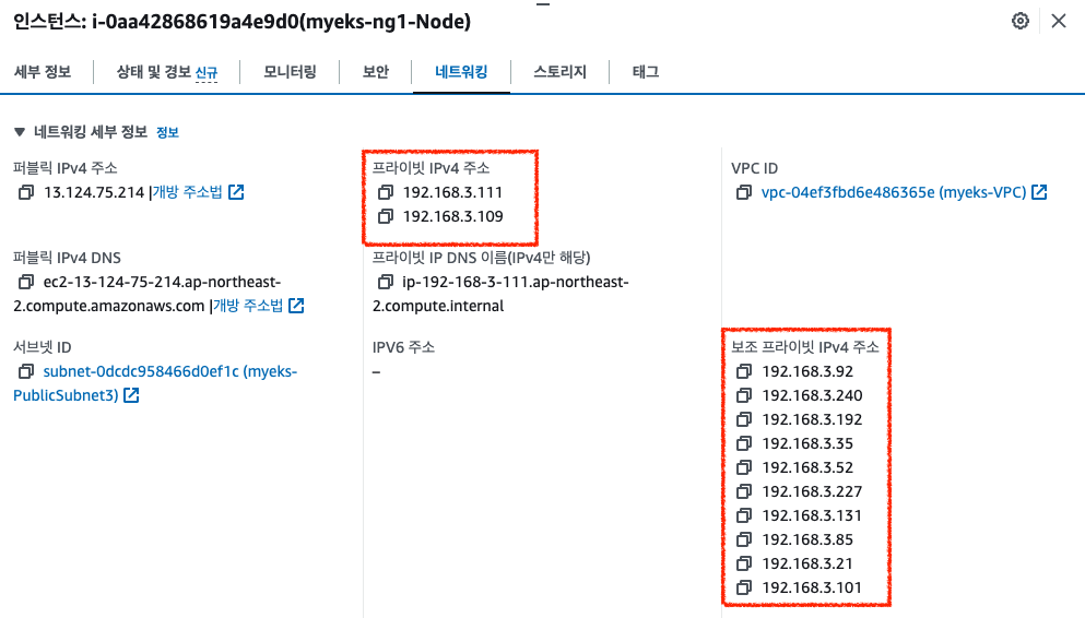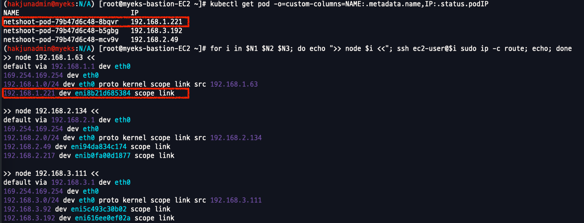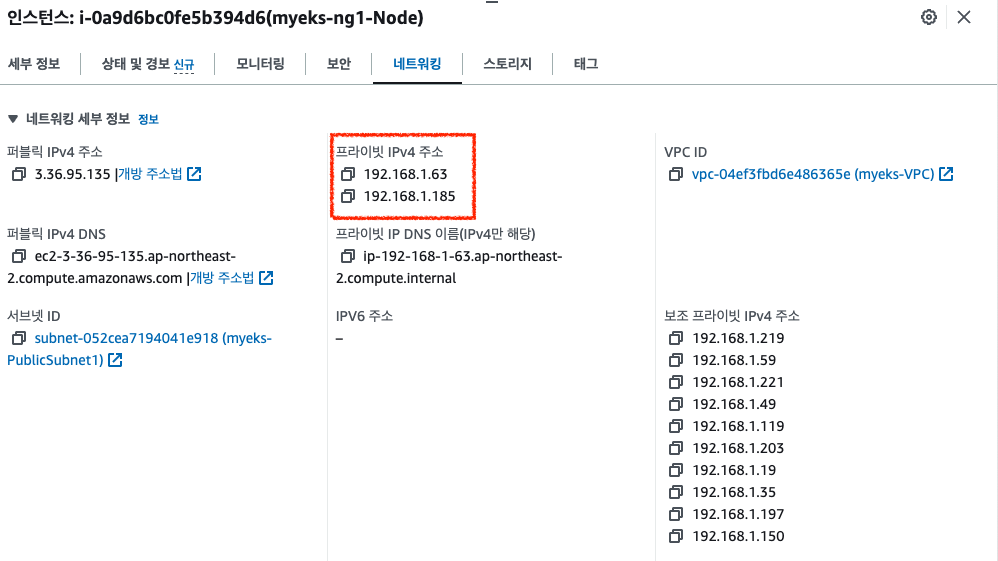 kube-system aws-node-bkttb 2/2 Running 0 50m 192.168.1.63 ip-192-168-1-63.ap-northeast-2.compute.internal <none> <none>