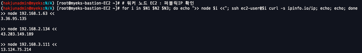 # 워커 노드 SSH 접속 : '-i ~/.ssh/id_rsa' 생략 가능