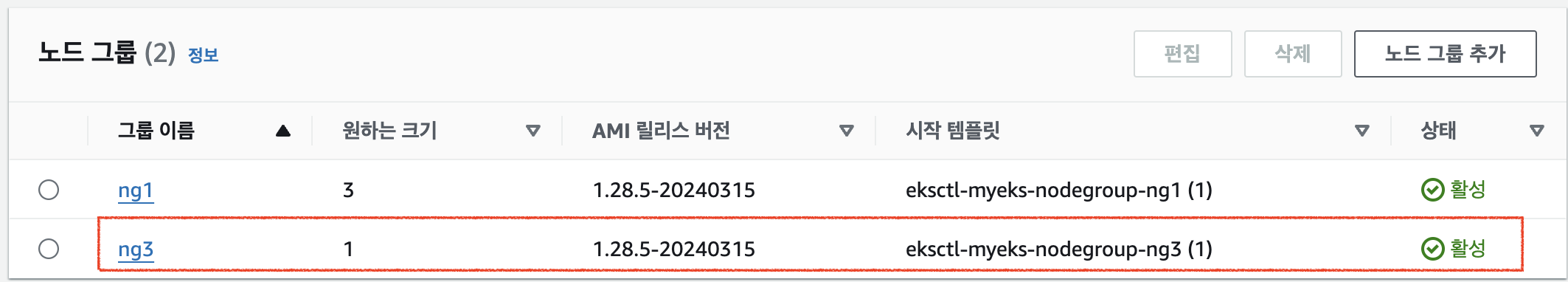 # 신규 노드 그룹 생성