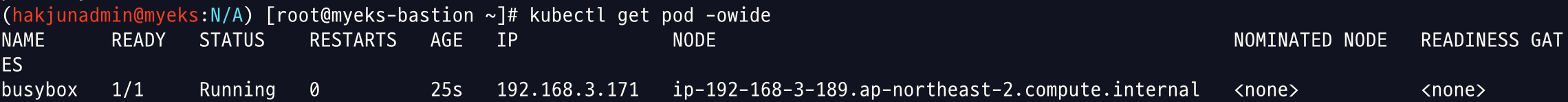 busybox 0/1 ContainerCreating 0 2s <none> ip-192-168-1-55.ap-northeast-2.compute.internal <none> <none>