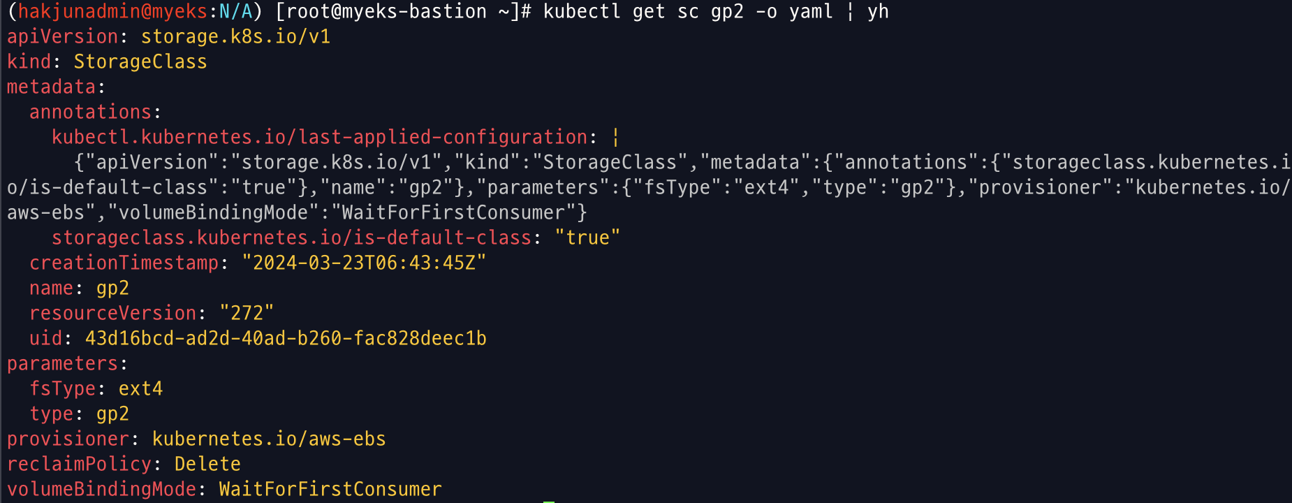 kubectl get sc gp2 -o yaml | yh