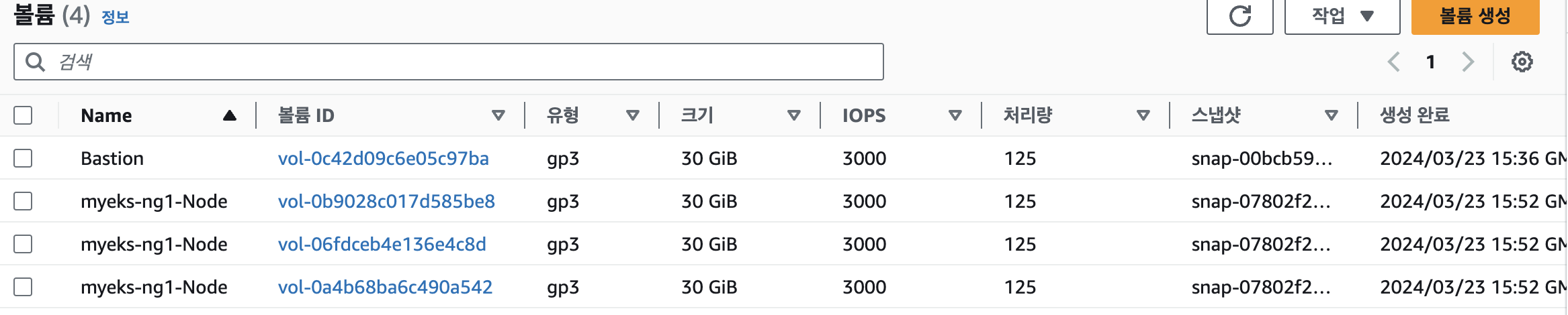 그럼 실습을 통해 EKS 환경의 PV,PVC를 구현해보겠습니다.