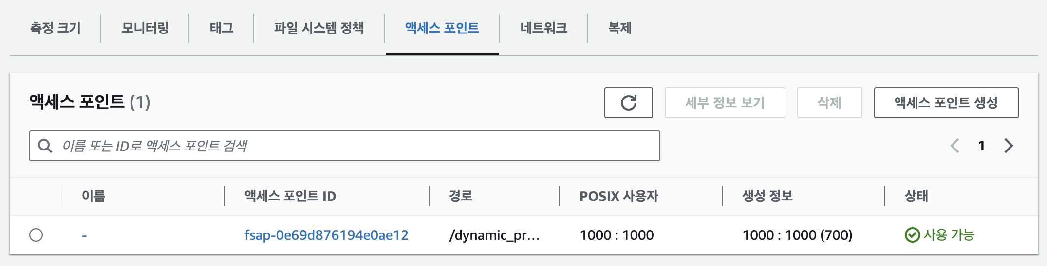 아래 명령을 통해 efs-csi-controller가 동적으로 볼륨을 프로비져닝 한 것을 확인할 수 있습니다.