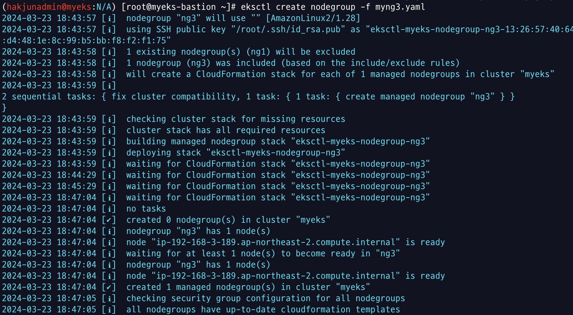eksctl create nodegroup -f myng3.yaml
