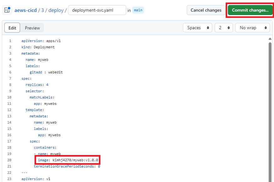 위와 같이 Gitops를 하기 위해선 배포 yaml 수정을 git에서 진행해야 합니다.