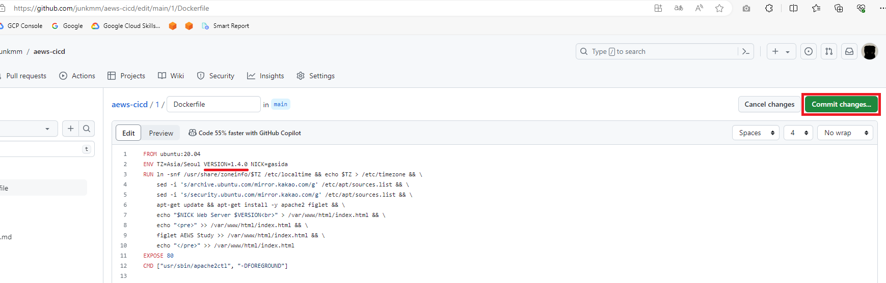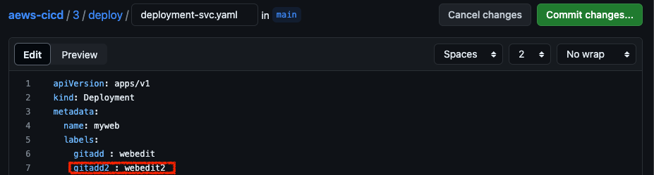 Github의 Yaml파일을 수정해 보겠습니다. yaml의 label을 추가하고 저장합니다.