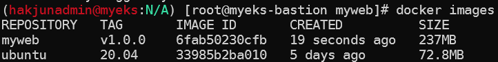 Bastion 호스트에서 간단한 웹 서비스 컨테이너 이미지를 생성하고, Push 해 보도록 하겠습니다.